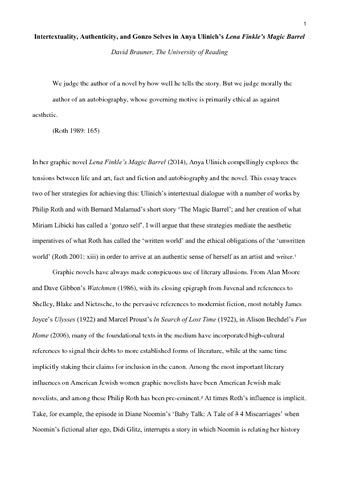 Intertextuality, authenticity, and gonzo selves in Anya Ulinich’s 'Lena Finkle’s Magic Barrel'.