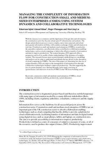 Managing the complexity of information flow for construction small and medium-sized enterprises (CSMEs) using system dynamics and collaborative technologies.