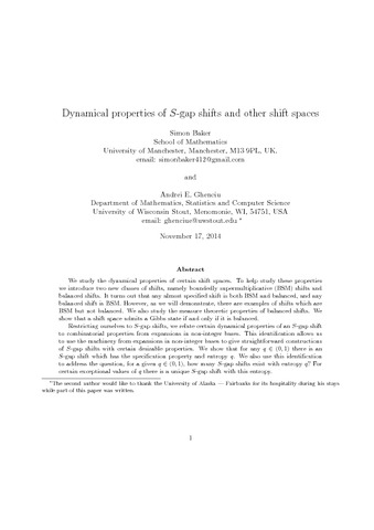 Baker, S. and Ghenciu, A. E. (2015) Dynamical properties of S-gap shifts and other shift spaces. Journal of Mathematical Analysis and Applications, 430 (2). pp. 633-647. ISSN 0022-247X doi: 10.1016/j.jmaa.2015.04.092