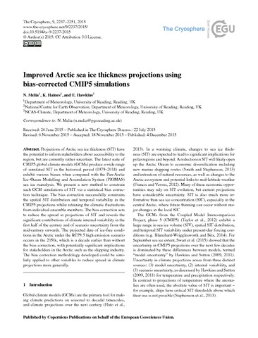 Improved Arctic sea-ice thickness projections using bias corrected CMIP5 simulations.