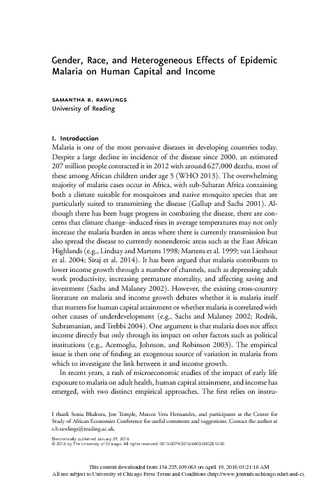 Gender, race, and heterogeneous effects of epidemic malaria on human capital and income.
