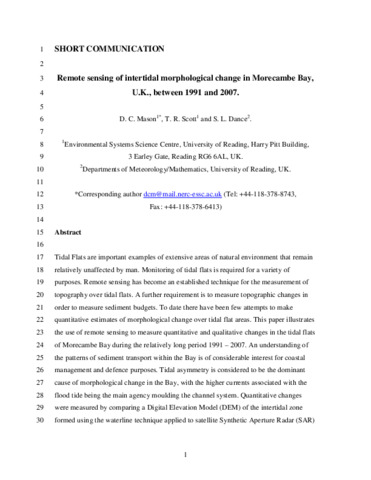 Remote sensing of intertidal morphological change in Morecambe Bay, U.K., between 1991 and 2007.