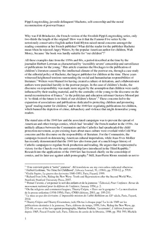 Pippi Longstocking, juvenile delinquent? Hachette, self-censorship and the moral reconstruction of postwar France.