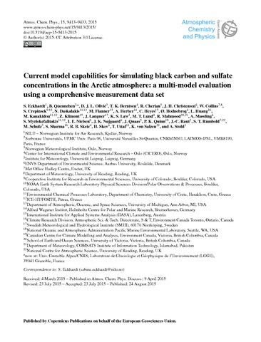 Current model capabilities for simulating black carbon and sulfate concentrations in the Arctic atmosphere: a multi-model evaluation using a comprehensive measurement data set.