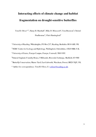 Interacting effects of climate change and habitat fragmentation on drought-sensitive butterflies.