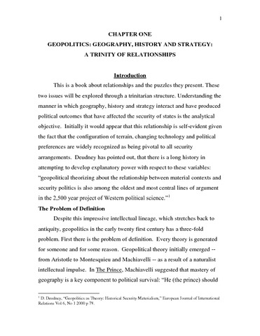 This is a book about relationships and the puzzles they present. These two issues will be explored through a trinitarian structure. Understanding the manner in which geography, history and strategy interact and have produced political outcomes that have affected the security of states is the analytical objective.