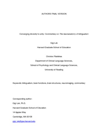 Converging diversity to unity: commentary on 'The neuroanatomy of bilingualism'.