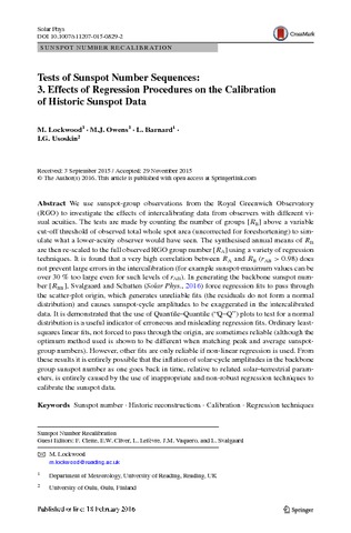 Tests of sunspot number sequences: 3. Effects of regression procedures on the calibration of historic sunspot data.