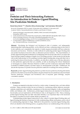 Roche, D. B., Brackenridge, D. A. and McGuffin, L. J. orcid id iconORCID: https://orcid.org/0000-0003-4501-4767 (2015) Proteins and their interacting partners: an introduction to protein–ligand binding site prediction methods. International Journal of Molecular Sciences, 16 (12). pp. 29829-29842. ISSN 1422-0067 doi: 10.3390/ijms161226202
