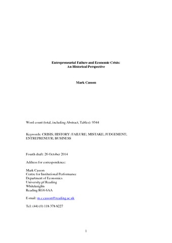 Entrepreneurial failure and economic crisis: