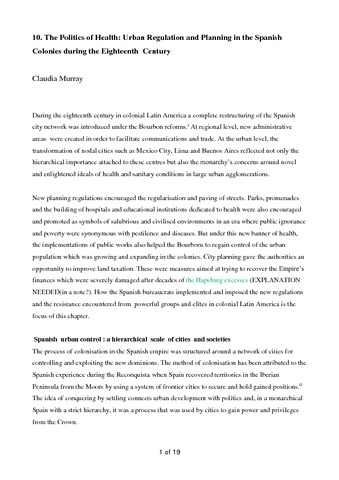 The politics of health: urban regulation and planning in the Spanish colonies during the Eighteenth century