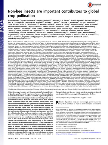 Rader, R., Bartomeus, I., Garibaldi, L. A., Garratt, M. P. D. ORCID: https://orcid.org/0000-0002-0196-6013, Howlett, B. G., Winfree, R., Cunningham, S. A., Mayfield, M. M., Arthur, A. D., Andersson, G. K. S., Bommarco, R., Brittain, C., Carvalheiro, L. G., Chacoff, N. P., Entling, M. H., Foully, B., Freitas, B. M., Gemmill-Herren, B., Ghazoul, J., Griffin, S. R., Gross, C. L., Herbertsson, L., Herzog, F., Hipólito, J., Jaggar, S., Jauker, F., Klein, A.-M., Kleijn, D., Krishnan, S., Lemos, C. Q., Lindström, S. A. M., Mandelik, Y., Monteiro, V. M., Nelson, W., Nilsson, L., Pattemore, D. E., de O. Pereira, N., Pisanty, G., Potts, S. G.