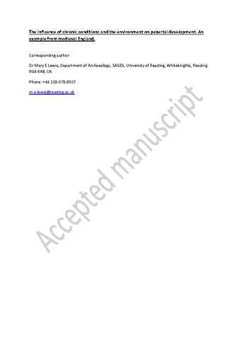 • Lewis M, Shapland F, and Watts R. 2015. On the threshold of adulthood: A new approach for the use of maturation indicators to assess puberty in adolescents from medieval England. American Journal of Human Biology, DOI: 10.1002/ajhb.22761.
