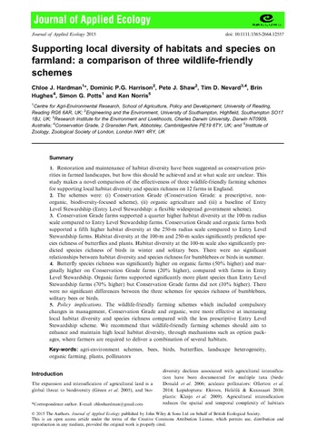 Supporting local diversity of habitats and species on farmland: a comparison of three wildlife-friendly schemes.