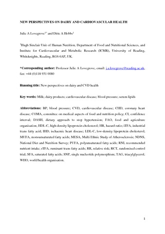 Plenary Lecture 2: Milk and dairy produce and CVD: new perspectives on dairy and cardiovascular health.