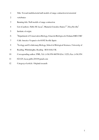 Toward multifactorial null models of range contraction in terrestrial vertebrates.