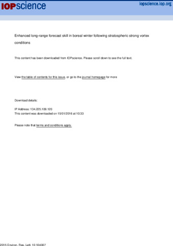Enhanced long-range forecast skill in boreal winter following stratospheric strong vortex conditions.
