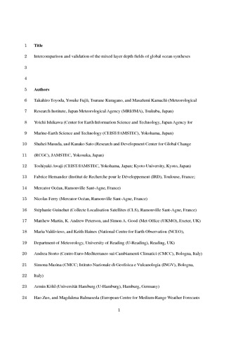 Intercomparison and validation of the mixed layer depth fields of global ocean syntheses.