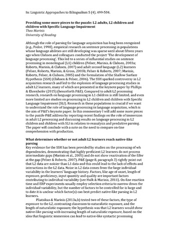 Marinis, T. (2015) Providing some more pieces to the puzzle: L2 adults, L2 children and children with Specific Language Impairment. Linguistic Approaches to Bilingualism, 5 (4). pp. 499-504. ISSN 1879-9272 doi: 10.1075/lab.5.4.10mar