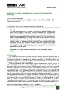 Maftei, L. and Harty, C. (2015) Designing in caves: using immersive visualisations in design practice. International Journal of Architectural Research: ArchNet-IJAR, 9 (3). pp. 53-75. ISSN 1938-7806 doi: 10.26687/archnet-ijar.v9i3.693 (special issue “Design Creativity: "Future Integrated Visualisation Directions”)