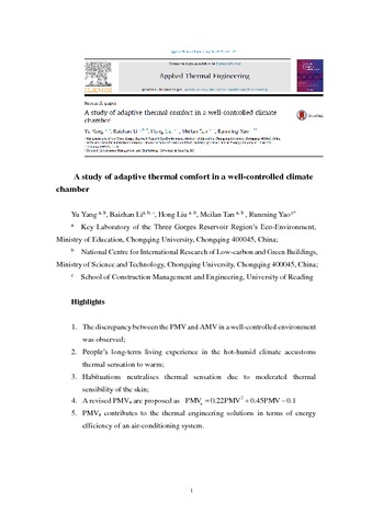 A study of adaptive thermal comfort in a well-controlled climate chamber.