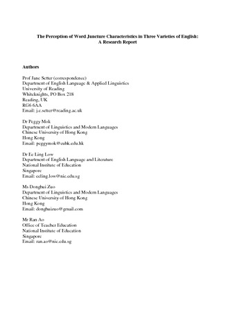 The subtle juncture cues in older varieties of English such as Received Pronunciation can be difficult for speakers of new English varieties to perceive. This study looks at the perception of word juncture characteristics in three varieties of English (British, Hong Kong and Singapore) among British, Hong Kong and Singaporean listeners in order to widen our understanding of English juncture characteristics in general. We find that, even though reaction time data indicates that listeners perform quickest in the variety they are most familiar with, not only are juncture differences in British English difficult for Hong Kong and Singaporean listeners to perceive, they are also the most difficult for British listeners. Juncture characteristics in Hong Kong English are the easiest to distinguish among the three varieties.