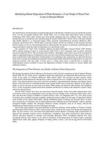Lodwick, L. (2015) Identifying ritual deposition of plant remains: a case study of stone pine cones in Roman Britain. In: Brindle, T., Allen, M., Durham, E. and Smith, A. (eds.) TRAC 2014: Proceedings of the Twenty-Fourth Annual Theoretical Roman Archaeology Conference. Oxbow, Oxford, pp. 54-69. ISBN 9781785700026