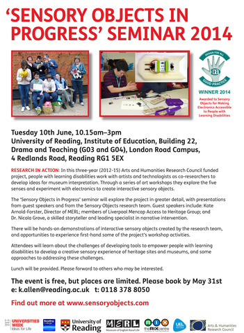 In: Sensory Objects in Progress, 10 June 2014, MERL, Reading.