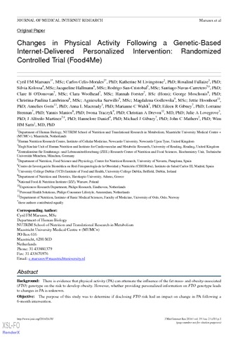 19. Marsaux CF, Celis-Morales C, Fallaize R, Macready AL, Kolossa S, Woolhead C, et al. Effects of a Web-based personalized intervention on physical activity in European adults: A randomized controlled trial. J Med Internet Res 2015;17(10):e231 [FREE Full text] [CrossRef] [Medline]