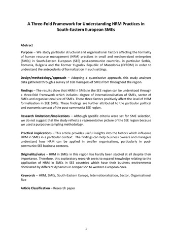 A three-fold framework for understanding HRM practices in South-Eastern European SMEs