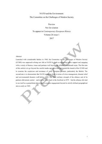 Launched with considerable fanfare in 1969, the Committee on the Challenges of Modern Society (CCMS) was supposed to bring new life to NATO by both re-energising public support and engaging with a variety of themes, issues and partners well beyond the alliance’s traditional scope. The first aim of this article is to go beyond the careful media operation that surrounded the launch of the CCMS and to examine the scepticism and resistance of some European partners, particularly the British. The second aim is to demonstrate that NATO started to think in terms of crisis management, disaster relief and environmental disasters well before 1989. The sheer military strength of the alliance and of its partners did remain central – and notably came back to the forefront in 1979 – but the alliance did start to see itself as a geopolitical player and to consider engagement beyond its strictly defined geographical area as early as 1969.