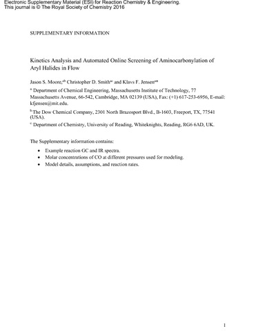 Kinetics analysis and automated online screening of aminocarbonylation of aryl halides in flow.
