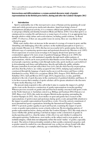 Intersections and differentiations: a corpus-assisted discourse study of gender representations in the British press before, during and after the London Olympics 2012.