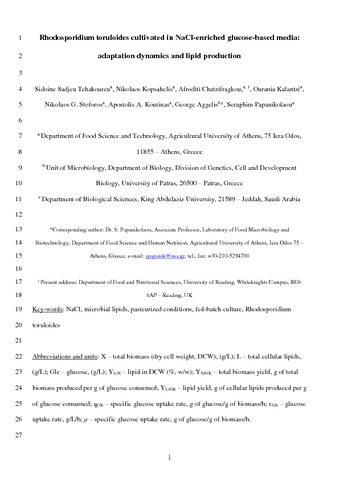 Tchakouteu, S. S., Kopsahelis, N., Chatzifragkou, A. orcid id iconORCID: https://orcid.org/0000-0002-9255-7871, Kalantzi, O., Stoforos, N. G., Koutinas, A. A., Aggelis, G. and Papanikolaou, S. (2017) Rhodosporidium toruloides cultivated in NaCl-enriched glucose-based media: adaptation dynamics and lipid production. Engineering in Life Sciences, 17 (3). pp. 237-248. ISSN 1618-2863 doi: 10.1002/elsc.201500125