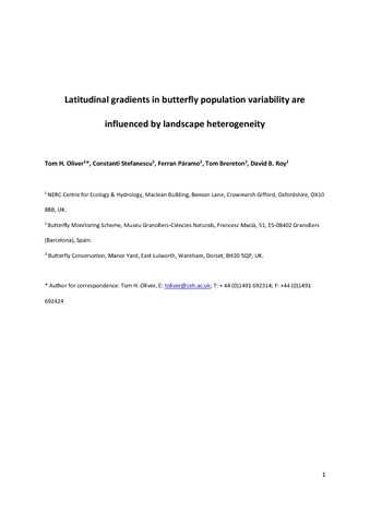 Latitudinal gradients in butterfly population variability are influenced by landscape heterogeneity.