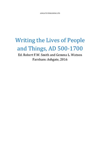 Watson, G. L. (2015) Roger Machado: a life in objects. In: Smith, R. F. W. and Watson, G. L. (eds.) Writing the lives of people and things, AD 500-1700: A multi-disciplinary future for biography. Routledge, Farnham, UK, pp. 89-113. ISBN 9781472450678