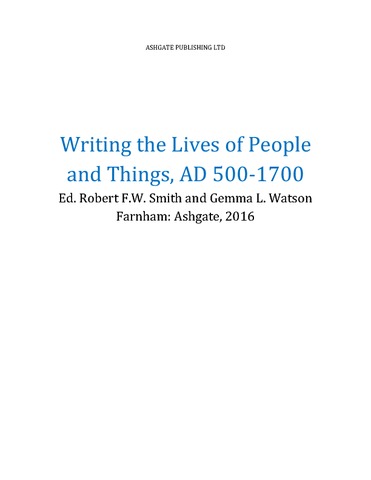 Smith, R. F. W. and Watson, G. L. (2016) Introduction. In: Smith, R. F. W. and Watson, G. L. (eds.) Writing the lives of people and things, AD 500-1700: A multi-disciplinary future for biography. Ashgate, Farnham, UK, pp. 1-10. ISBN 9781472450678