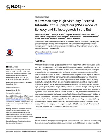 A low mortality, high morbidity reduced intensity status epilepticus (RISE) model of epilepsy and epileptogenesis in the rat.