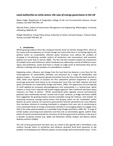 | Uncontrolled Keywords | Multi-Level Perspective Local authorities Local ‘energy governance’ in the UK |