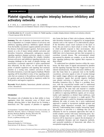 ORCID: https://orcid.org/0000-0002-2061-2253, Unsworth, A. J. and Gibbins, J. M.
