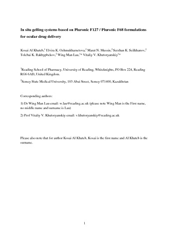 In situ gelling systems based on Pluronic F127/Pluronic F68 formulations for ocular drug delivery.