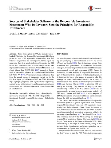 Since its inception in 2006, the United Nations-backed Principles for Responsible Investment (PRI) have grown to over 1300 signatories representing over $45 trillion. This growth is not slowing down. In this paper, we argue that there is a set of attributes which make the PRI salient as a stakeholder and its claim to sign the six PRI important to institutional investors. We use Mitchell et al.’s (Acad Manag Rev 22:853–886, 1997) theoretical framework of stakeholder salience, as extended by Gifford (J Bus Eth 92:79–97, 2010). We use as evidence confidential data from the annual survey of signatories carried out by the PRI in a 5-year period between 2007 and 2011. The findings highlight pragmatic and organizational legitimacy, normative and utilitarian power, and management values as the attributes that contribute most to the salience of the PRI as a stakeholder.
