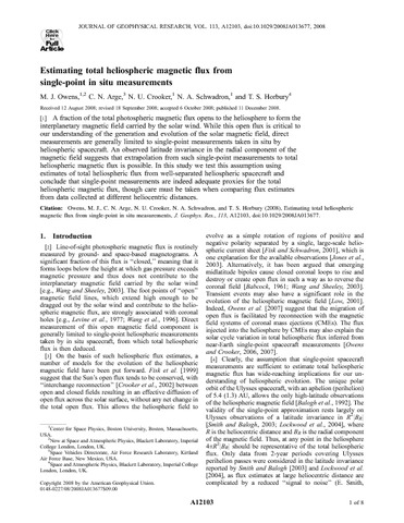 Owens, M. J. orcid id iconORCID: https://orcid.org/0000-0003-2061-2453, Arge, C. N., Crooker, N. U., Schwadron, N. A. and Horbury, T. S. (2008) Estimating total heliospheric magnetic flux from single-point in situ measurements. Journal of Geophysical Research, 113 (A12). A12103. ISSN 0148-0227 doi: 10.1029/2008JA013677