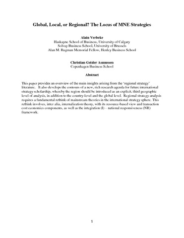 Verbeke, A. and Geisler Asmussen, C. (2016) Global, local, or regional? The locus of MNE strategies. Journal of Management Studies, 53 (6). pp. 1051-1075. ISSN 1467-6486 doi: 10.1111/joms.12190
