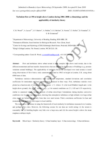 • Barlow JF, Coceal O (2009) A review of urban roughness sublayer turbulence. UK Met Office Technical Report no. 527, 68 pp