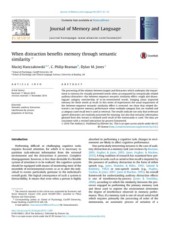 Hanczakowski, M., Beaman, C. P.