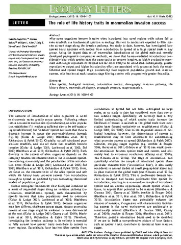 Why some organisms become invasive when introduced into novel regions while others fail to even establish is a fundamental question in ecology. Barriers to success are expected to filter species at each stage along the invasion pathway. No study to date, however, has investigated how species traits associate with success from introduction to spread at a large spatial scale in any group. Using the largest data set of mammalian introductions at the global scale and recently developed phylogenetic comparative methods, we show that human-mediated introductions considerably bias which species have the opportunity to become invasive, as highly productive mammals with longer reproductive lifespans are far more likely to be introduced. Subsequently, greater reproductive output and higher introduction effort are associated with success at both the establishment and spread stages. High productivity thus supports population growth and invasion success, with barriers at each invasion stage filtering species with progressively greater fecundity.