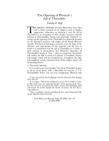 Plutarch begins the biography by selecting incidents and an epigram that anticipate the basic themes of Themistocles' life--his greatness, sometimes ambiguous, and his benefactions to all of Greece.