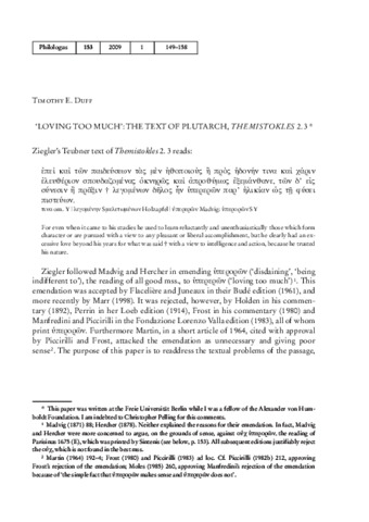 "Loving too much": the text of Plutarch, Themistokles 2.3.