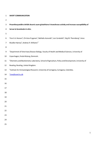 Proanthocyanidins inhibit Ascaris suum glutathione-S-transferase activity and increase susceptibility of larvae to levamisole and ivermectin in vitro